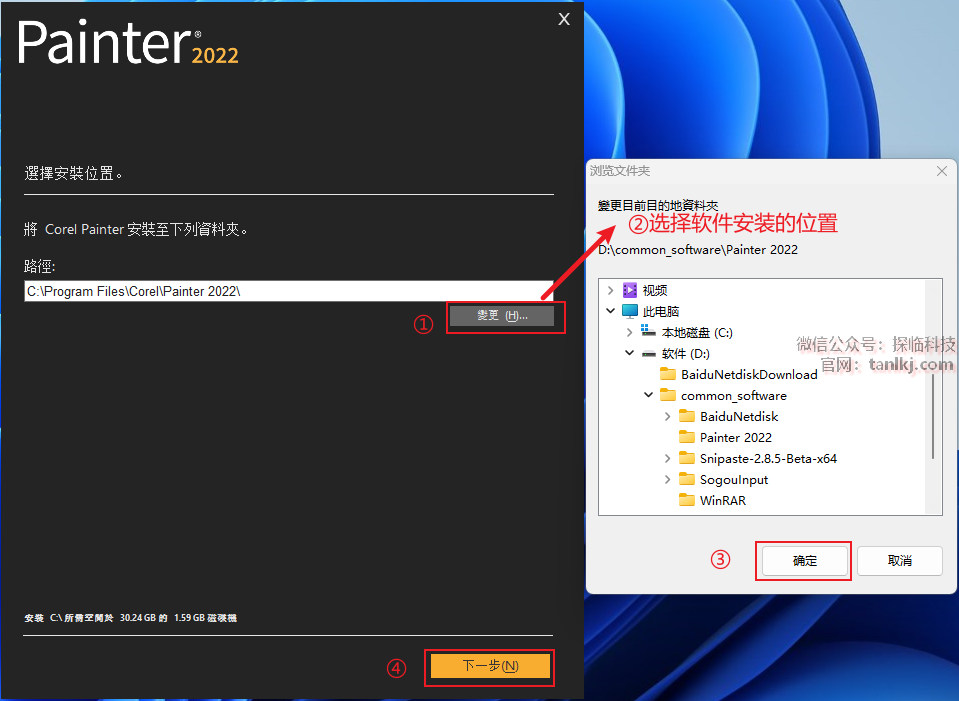 ②选择软件安装的位置,安装路径中不能包含任何中文字符;