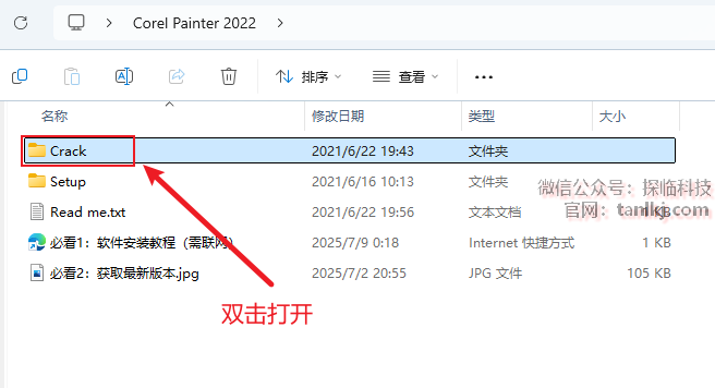 打开之前解压后的文件夹,双击打开文件夹【Crack】。