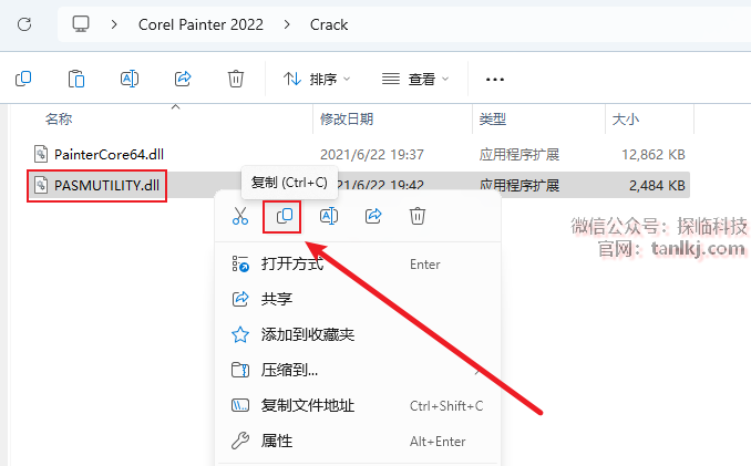 回到【Crack】的文件夹中,复制文件【PASMUTILITY】。