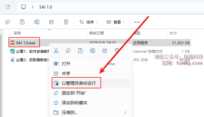 打开解压后的文件夹,右键程序【SAI 1.0】,点击【以管理员身份运行】。