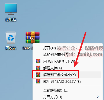 解压下载后的软件包。右键软件包,点击【解压到当前文件夹】(win11系统需先点击【显示更多选项】)。 (未安装解压软件可以点击此处查看:如何安装解压软件?)