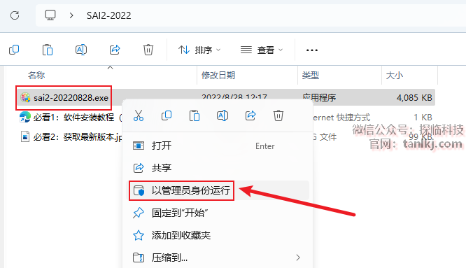 打开解压后的文件夹,右键程序【sai2…】,点击【以管理员身份运行】。