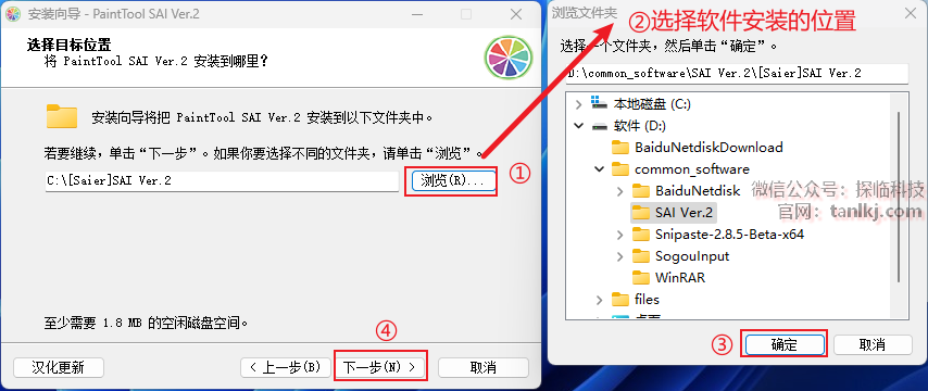 ②选择软件安装的位置,安装路径中不能包含任何中文字符;