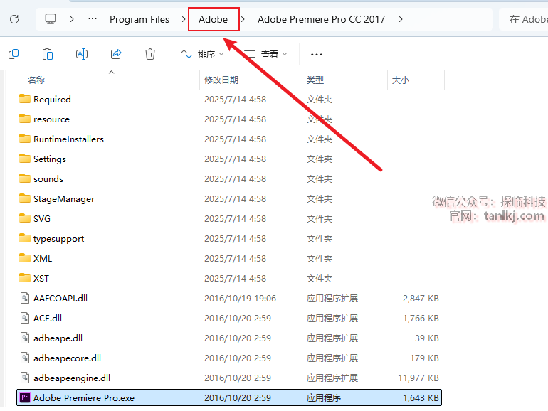 点击上方地址栏中的【Adobe】。