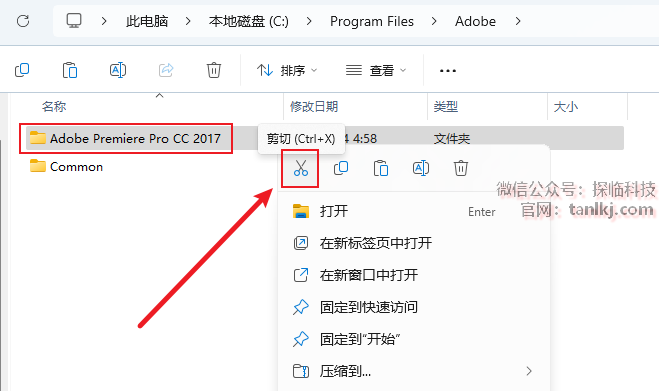 剪切文件【Adobe Premiere Pro CC 2017】。