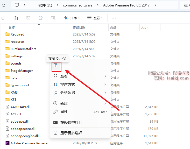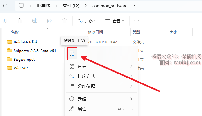打开软件需要安装的位置,粘贴刚刚剪切的文件。