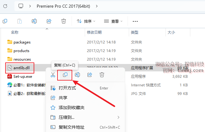 打开之前解压后的文件夹,复制文件【amtlib】。