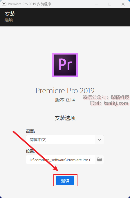 更改软件默认的安装位置,如不需更改,直接点击【继续】即可。