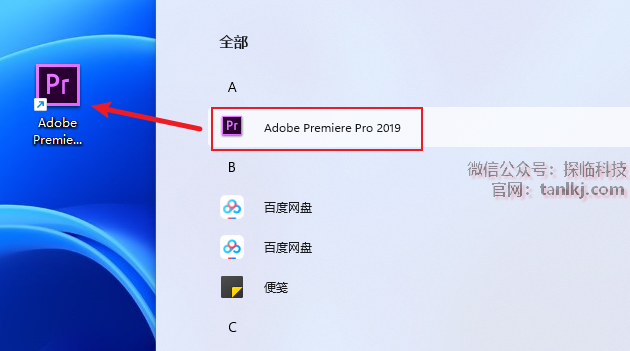 找到软件【Adobe Premiere Pro 2019】,将其拖至桌面创建快捷方式。