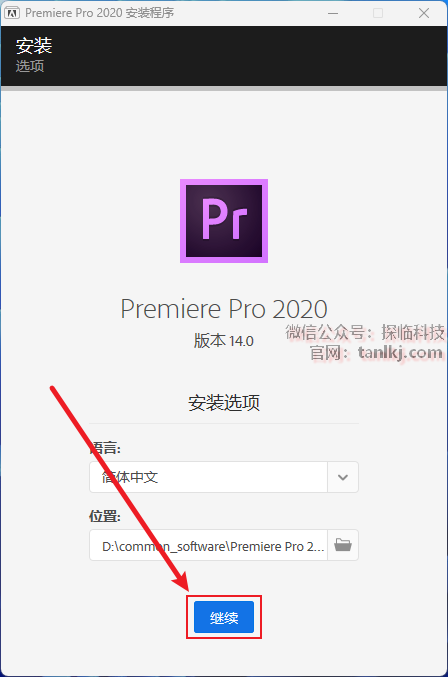 更改软件默认的安装位置,如不需更改,直接点击【继续】即可。