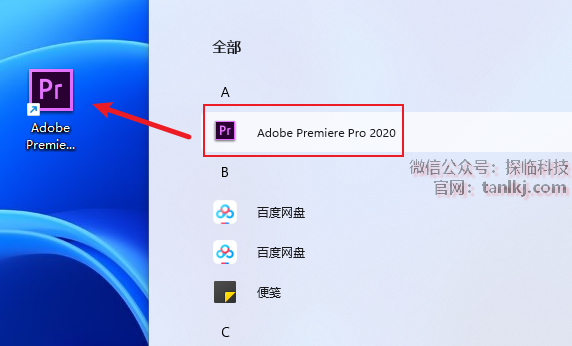 找到软件【Adobe Premiere Pro 2020】,将其拖至桌面创建快捷方式。
