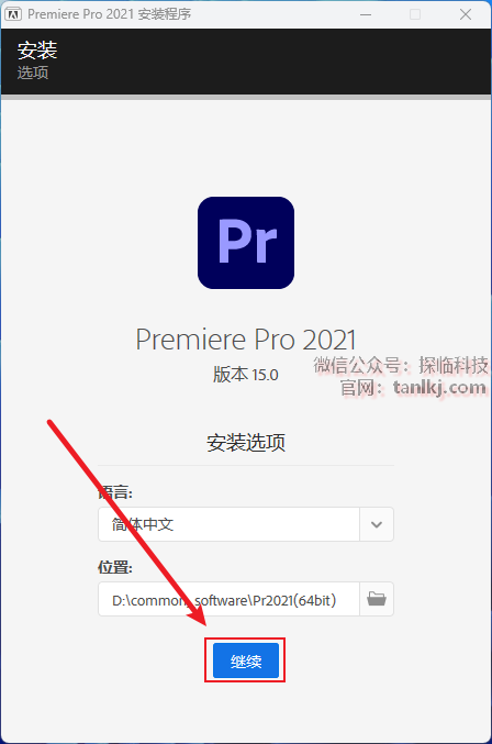 更改软件默认的安装位置,如不需更改,直接点击【继续】即可。