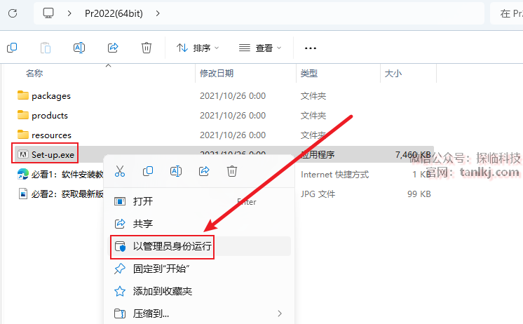 打开解压后的文件夹,右键安装程序【Set-up】,点击【以管理员身份运行】。