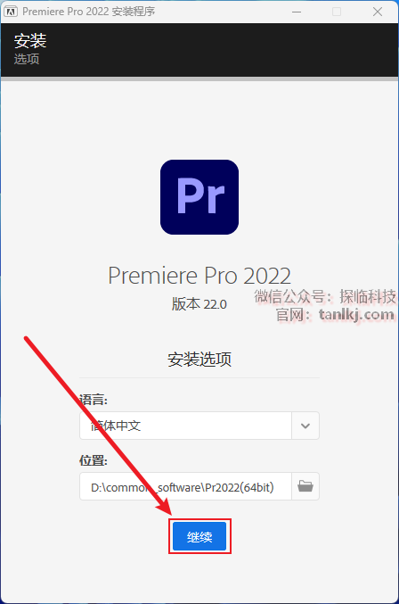 更改软件默认的安装位置,如不需更改,直接点击【继续】即可。
