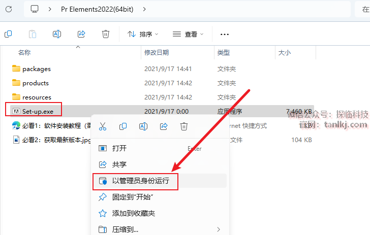 打开解压后的文件夹,右键安装程序【Set-up】,点击【以管理员身份运行】。