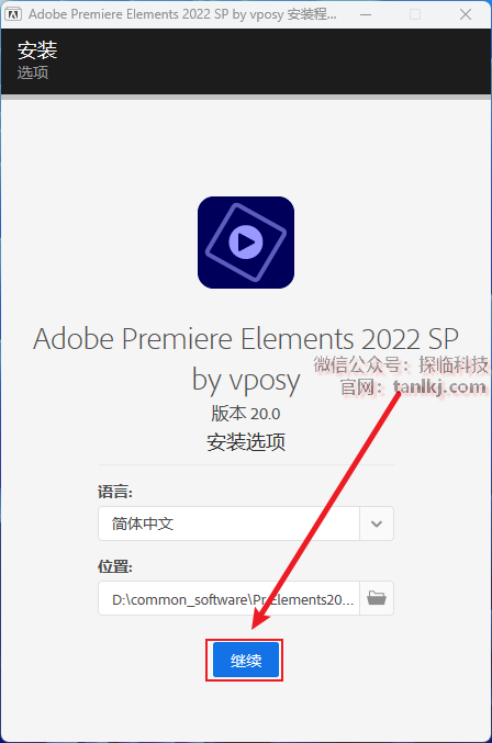 更改软件默认的安装位置,如不需更改,直接点击【继续】即可。