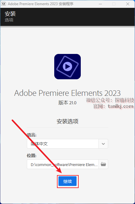 更改软件默认的安装位置,如不需更改,直接点击【继续】即可。