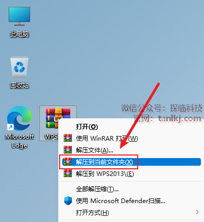 解压下载后的软件包。右键软件包,点击【解压到当前文件夹】(win11系统需先点击【显示更多选项】)。