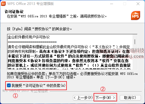 ①勾选【我接受“许可证协议”中的条款】;