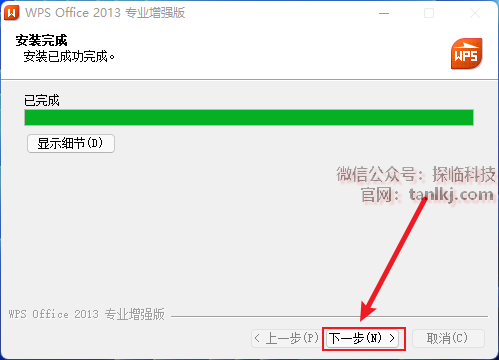 安装完成后,点击【下一步】。