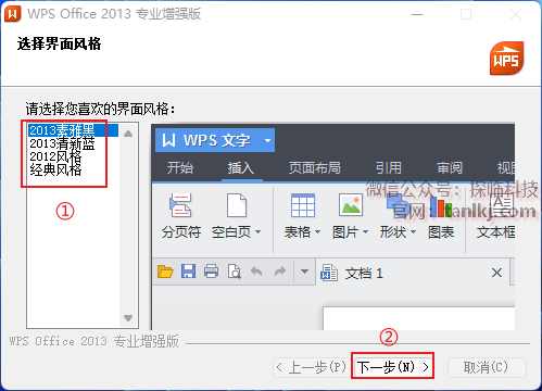 左边栏可以选择界面风格,然后点击【下一步】。