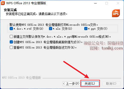 点击【关闭】。