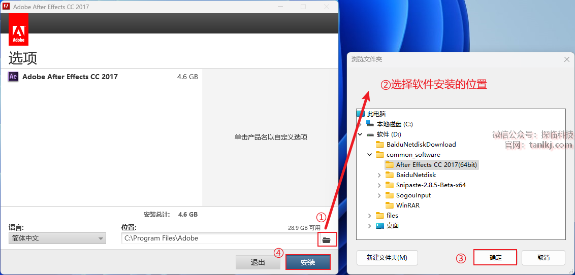 ②选择软件安装的位置,安装路径中不能包含任何中文字符;