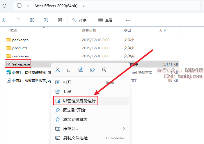 打开解压后的文件夹,右键安装程序【Set-up】,点击【以管理员身份运行】。