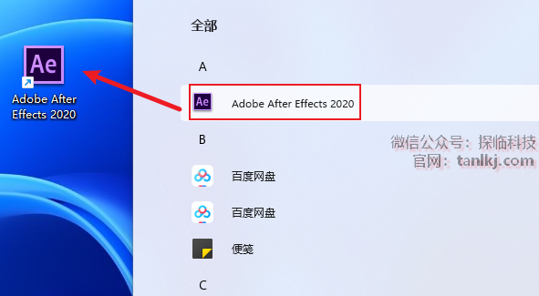 找到软件【Adobe After Effects 2020】,将其拖至桌面创建快捷方式。