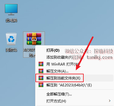 解压下载后的软件包。右键软件包,点击【解压到当前文件夹】(win11系统需先点击【显示更多选项】)。 (未安装解压软件可以点击此处查看:如何安装解压软件?)