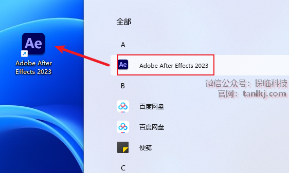 找到软件【Adobe After Effects 2023】,将其拖至桌面创建快捷方式。