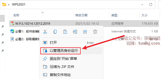 打开解压后的文件夹,右键程序【W.P.S.10214…】,点击【以管理员身份运行】。