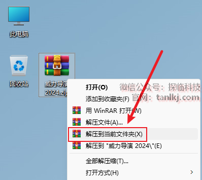 解压下载后的软件包。右键软件包,点击【解压到当前文件夹】(win11系统需先点击【显示更多选项】)。 (未安装解压软件可以点击此处查看:如何安装解压软件?)