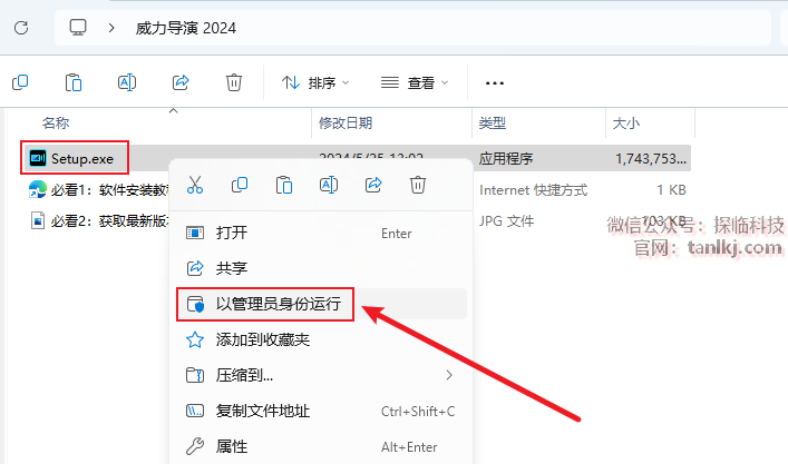 打开解压后的文件夹,右键安装程序【Setup】,点击【以管理员身份运行】。