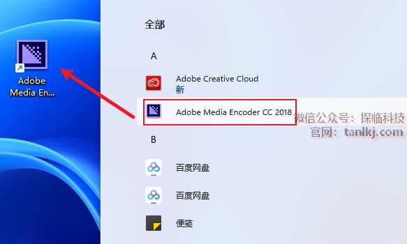 找到软件【Adobe Media Encoder CC 2018】,将其拖至桌面创建快捷方式。