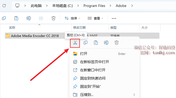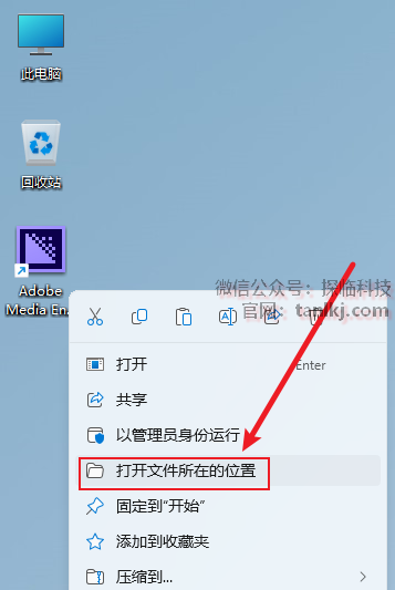在桌面,右键软件【Adobe Media Encode CC 2018】,点击【打开文件所在的位置】。