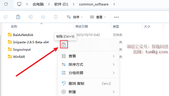 打开软件需要安装的位置,粘贴刚刚复制的文件。