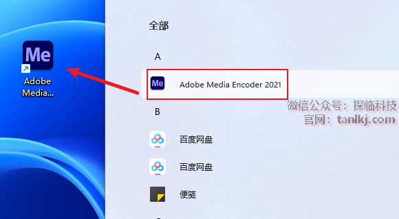 找到软件【Adobe Media Encoder 2021】,将其拖至桌面创建快捷方式。