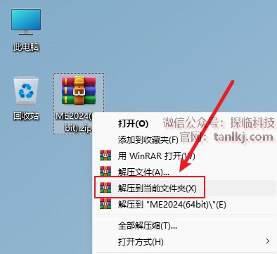 解压下载后的软件包。右键软件包,点击【解压到当前文件夹】(win11系统需先点击【显示更多选项】)。 (未安装解压软件可以点击此处查看:如何安装解压软件?)