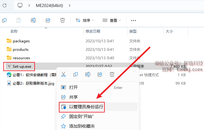 打开解压后的文件夹,右键安装程序【Set-up】,点击【以管理员身份运行】。