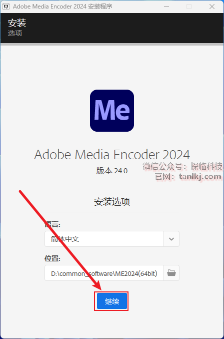 更改软件默认的安装位置,如不需更改,直接点击【继续】即可。