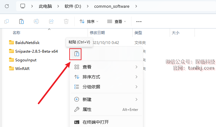 打开软件需要安装的位置,粘贴刚刚复制的文件。