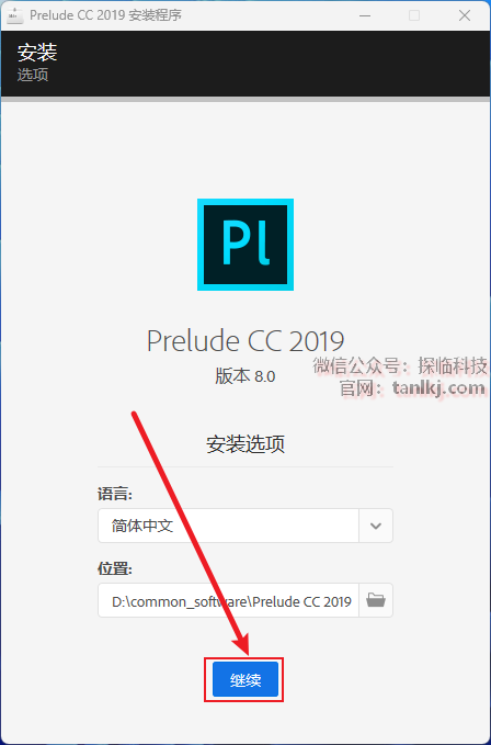 更改软件默认的安装位置,如不需更改,直接点击【继续】即可。