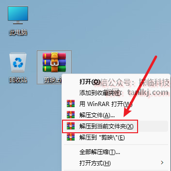 解压下载后的软件包。右键软件包,点击【解压到当前文件夹】(win11系统需先点击【显示更多选项】)。 (未安装解压软件可以点击此处查看:如何安装解压软件?)