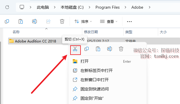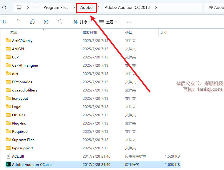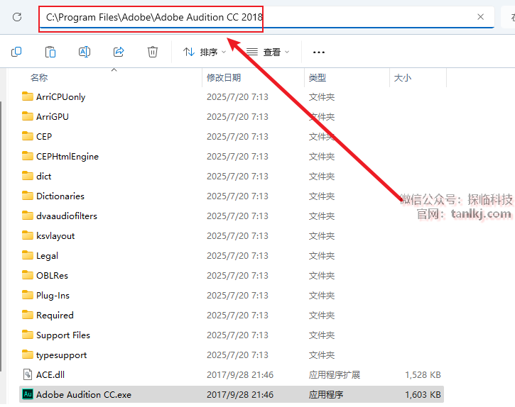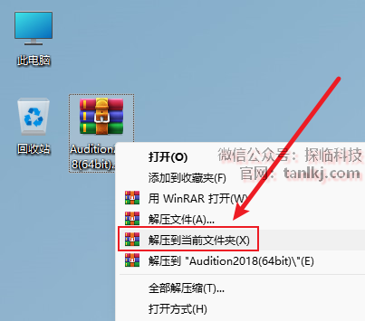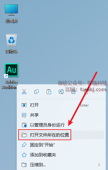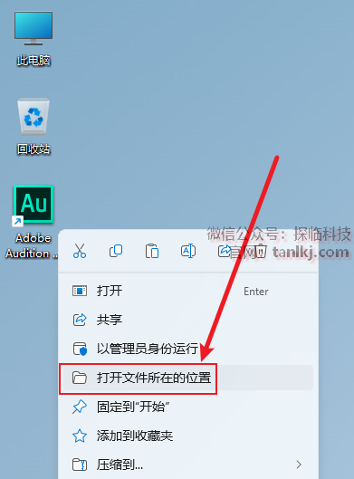 在桌面,右键软件【Adobe Audition CC 2018】,点击【打开文件所在的位置】。