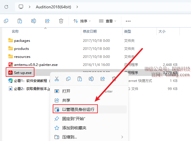 打开解压后的文件夹,右键安装程序【Set-up】,点击【以管理员身份运行】。