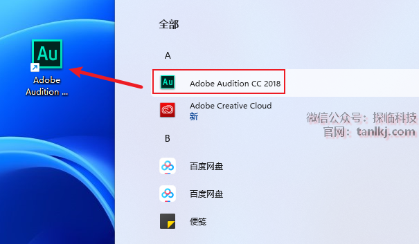 找到软件【Adobe Audition CC 2018】,将其拖至桌面创建快捷方式。