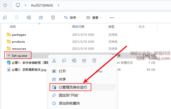 打开解压后的文件夹,右键安装程序【Set-up】,点击【以管理员身份运行】。