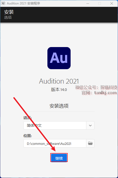 更改软件默认的安装位置,如不需更改,直接点击【继续】即可。