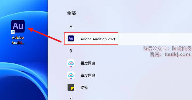 找到软件【Adobe Audition 2021】,将其拖至桌面创建快捷方式。